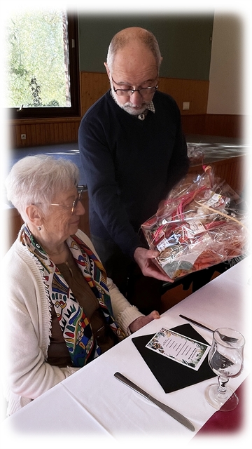 Madame Nicole Defleury et Monsieur Maurice Vicart, doyens présents au repas, ont été mis à l'honneur. Un panier gourmand leur a été offert par monsieur le Maire.