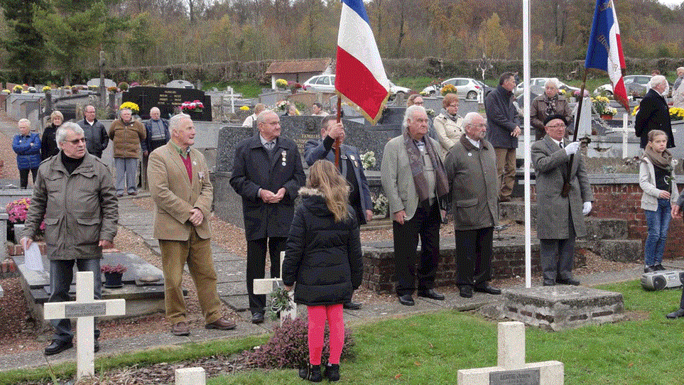 - La sonnerie "Aux morts" retentit, suivie d'une minute de silence et de la "Marseillaise" entonnée par toutes les personnes présentes au cimetière