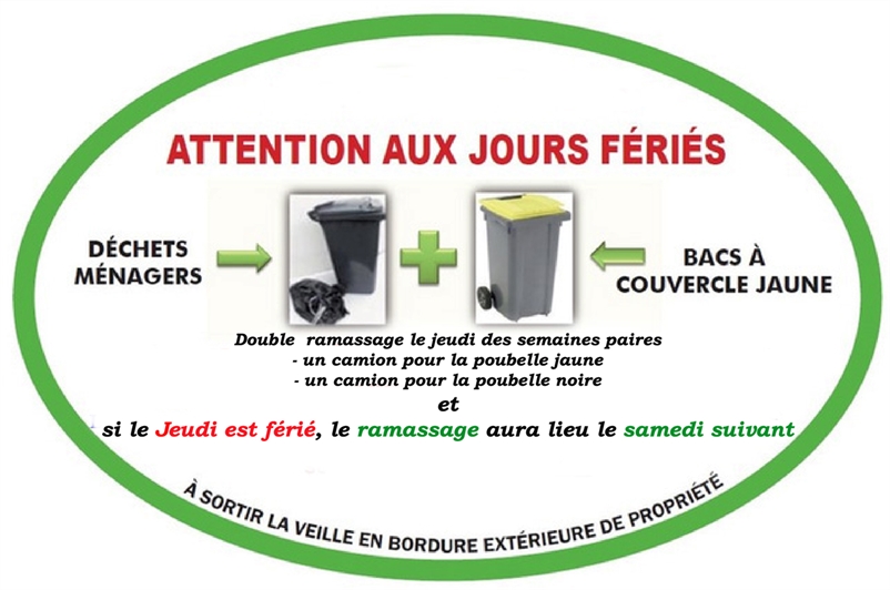 Attention pour Boubers-sur-Canche, la collecte des déchets reyclables (poubelle jaune) et des déchets à enfouir (poubelle noire) s'effectue uniquement sur les semaines paires, le mardi pour les poubelles jaunes et le jeudi pour les poubelles noires. Si deux semaines impaires se suivent, il y a un décalage d'une semaine à prendre en compte.